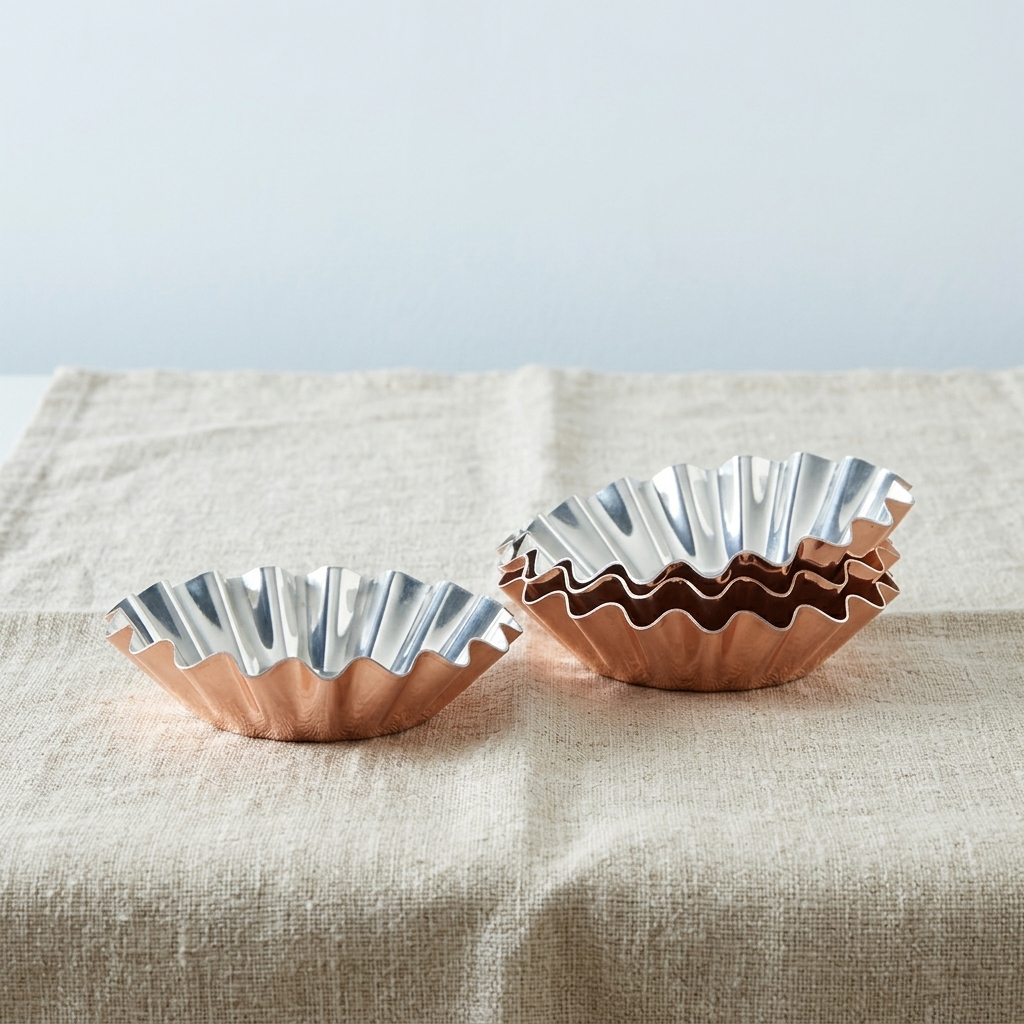 Set 6 adet el yapımı bakır turta kek kalıbından oluşmaktadır.