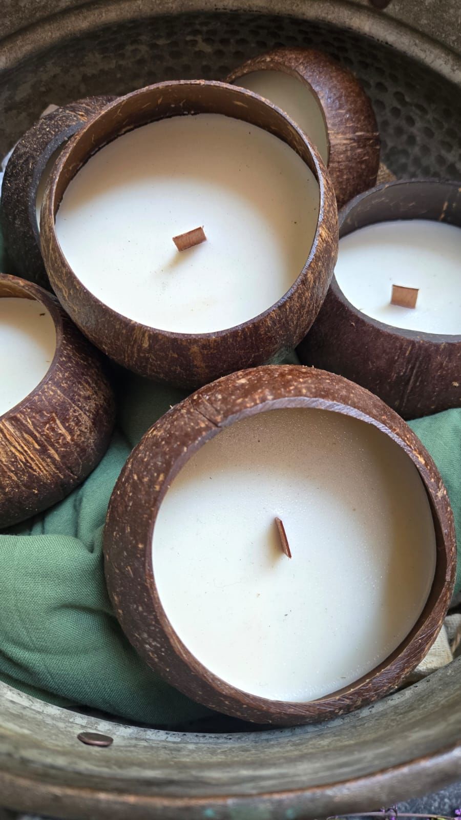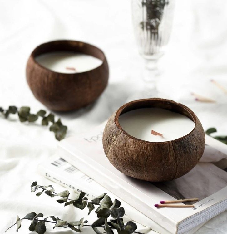 Coco cup içerisinde coconut wax ahşap fitilli mum.