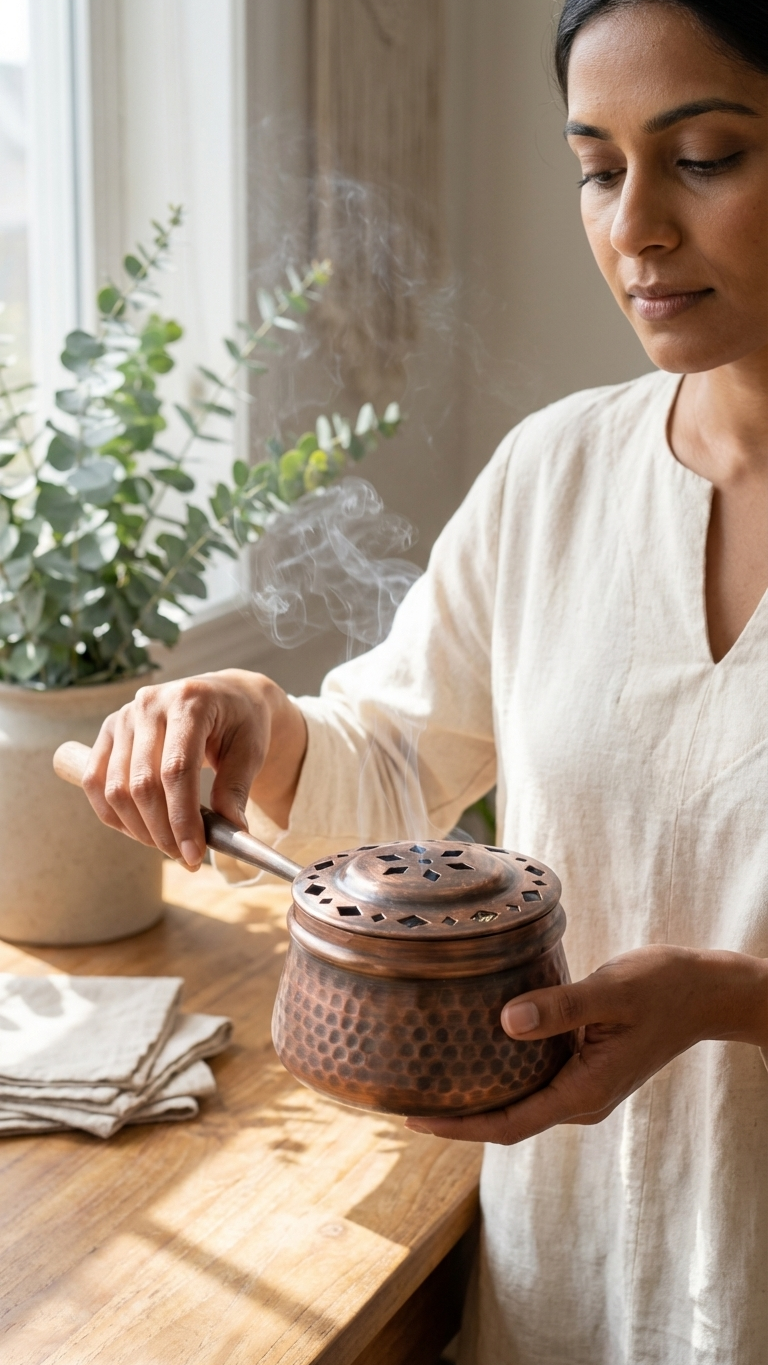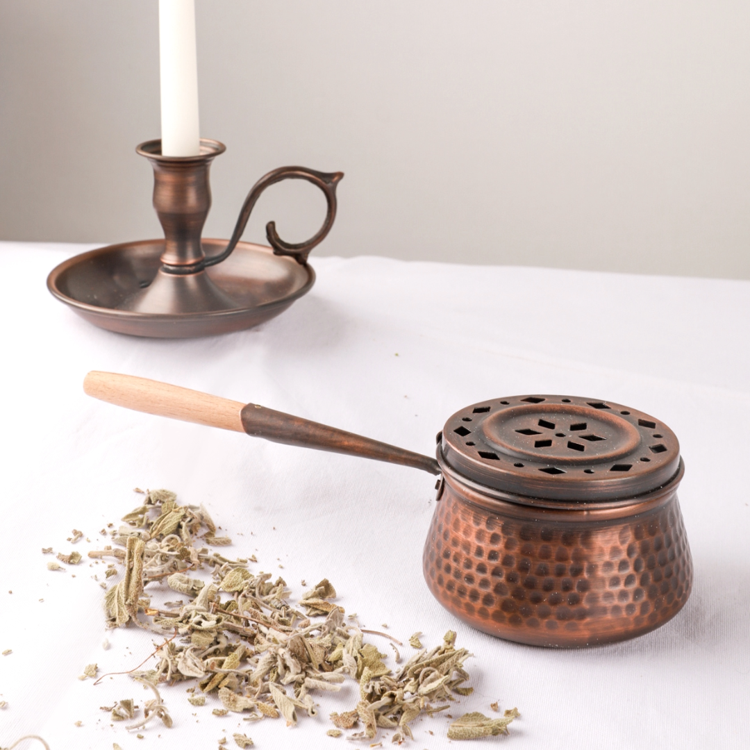 El yapımı oksit bakır tütsü gezdirme çanakları ile adaçayı, lavanta vb. ot tütsüleriniz ve Palo Santo, Sandal ağacı, Öd ağacı tütsülerinizi evinizin salonunda ve odalarında gezdirebilir, tütsülerinizin ferahlatıcı ve dinginleştirici etkisini tüm alanlara yayabilirsiniz.